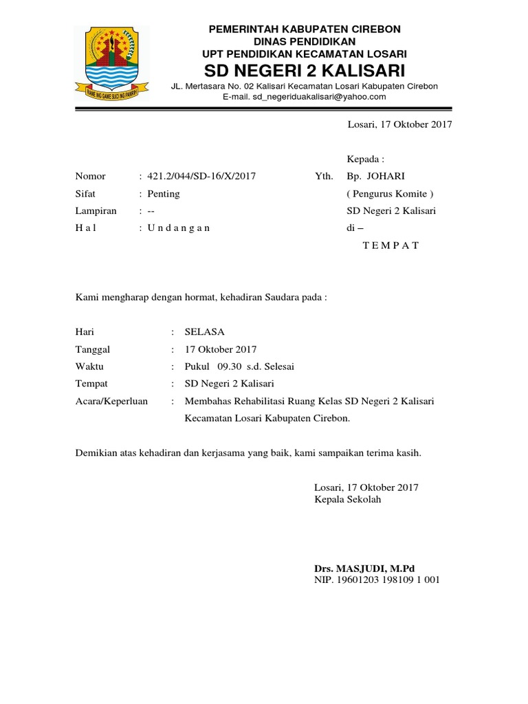 Pada contoh surat ini tidak ditampilkan karena keterbatasan ruang. 031 5342706 09 5344508 5345075 fax. Contoh surat undangan rapat sekolah dasar dinas. Contoh surat undangan rapat komite terbaru 2018 bagian 2.