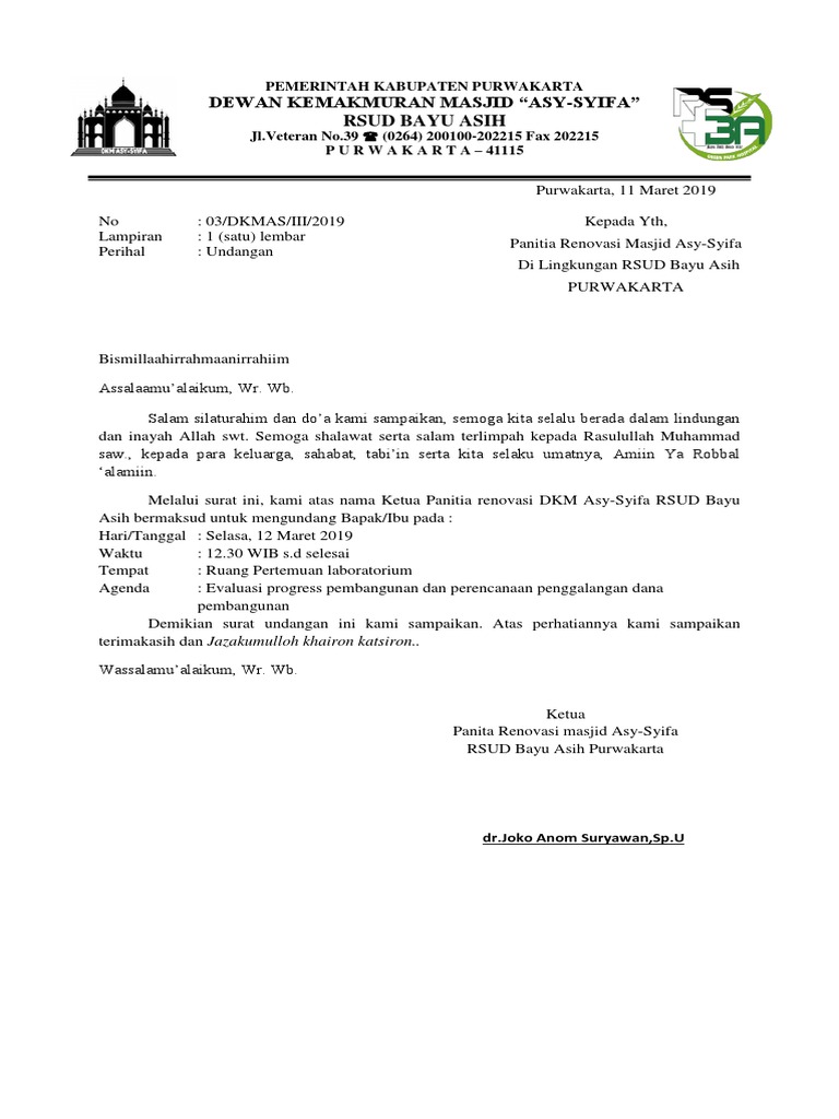 Keren Nih Contoh Surat Undangan Rapat Dkm Masjid