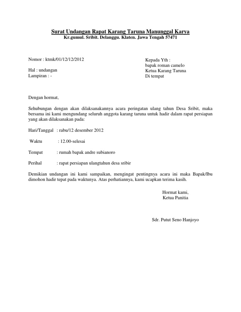 Koleksi Menarik Contoh Surat Undangan Rapat Karang Taruna Pdf
