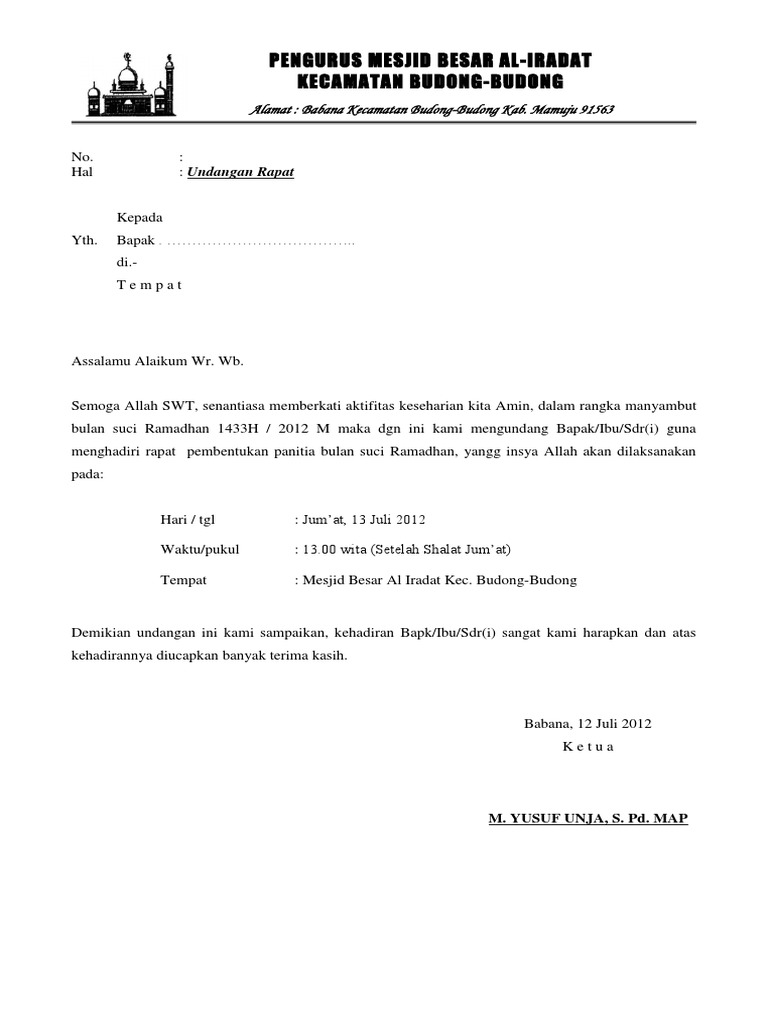 Terbaru Contoh Surat Undangan Rapat Pengurus Masjid