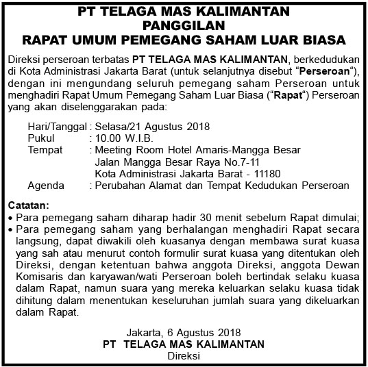 Paling Baru Contoh Surat Undangan Rups Luar Biasa