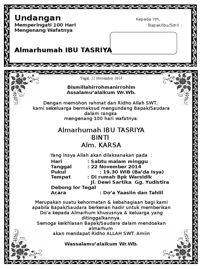 Paling Populer Contoh Surat Undangan Tahlilan 100 Hari