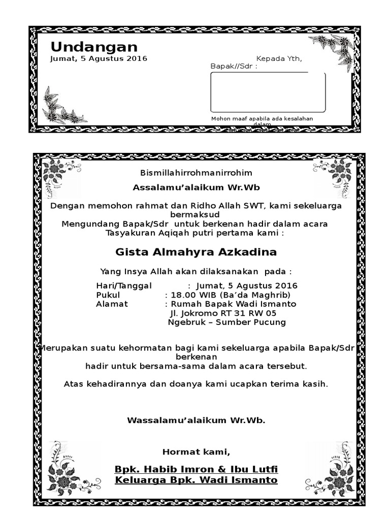 Paling Baru Contoh Surat Undangan Tasyakuran Aqiqah