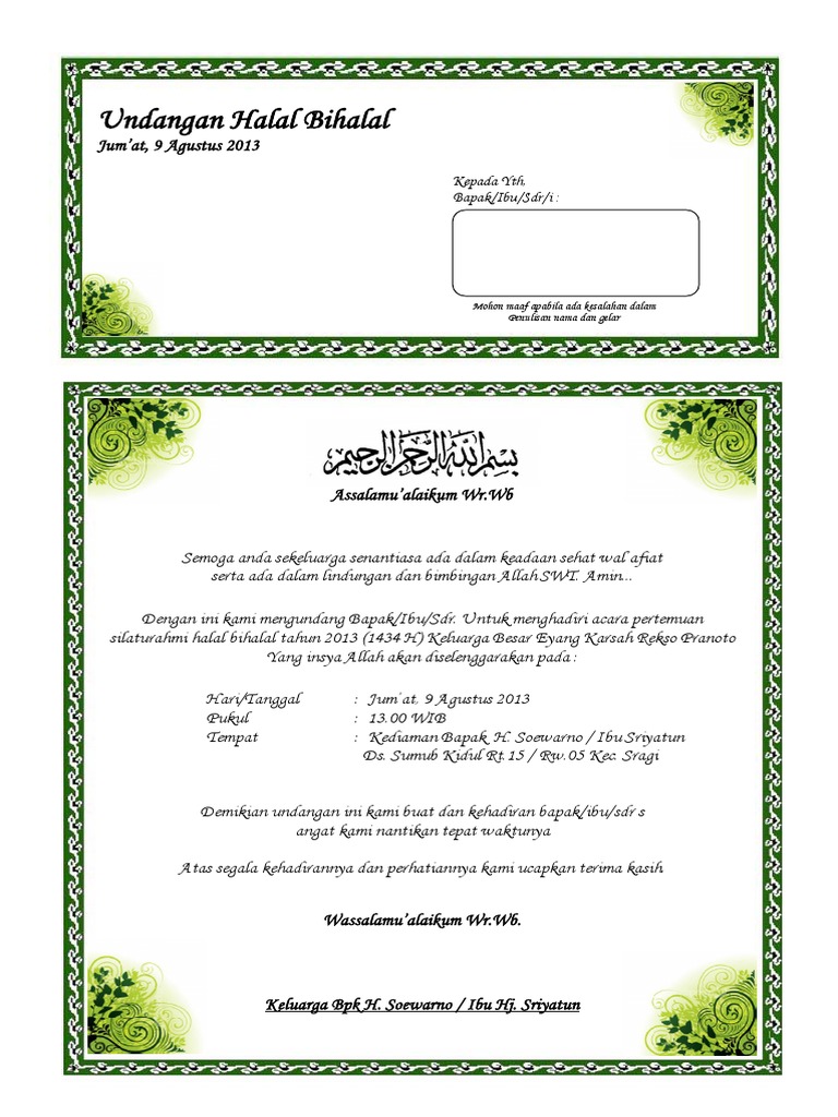 Inspiratif Contoh Surat Undangan Tasyakuran Pernikahan