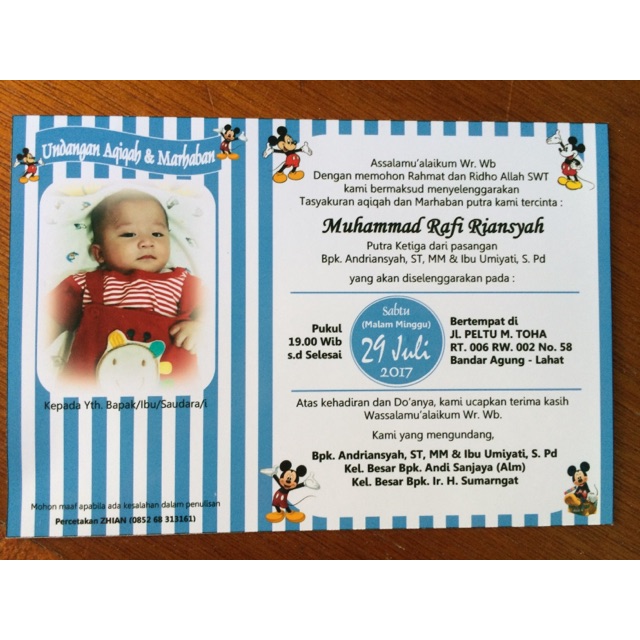 Contoh undangan aqiqah aqiqah adalah hewan sembelihan untuk anak laki laki atau perempuan yang baru lahir sebagai wujud rasa syukur kita kepada allah swt atas karunia terindah yang telah ia berikan. Kambing untuk aqiqah yang disembelih bebas boleh jantan boleh juga betina tidak ada syarat khusus. Untuk foto silahkan diubah juga yhaa. Contoh desain undangan aqiqah unik.