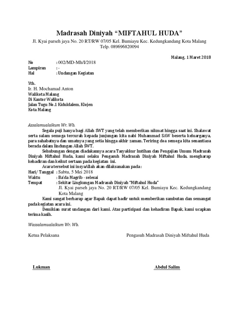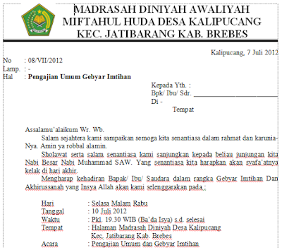 Paling Baru Contoh Undangan Imtihan Madrasah