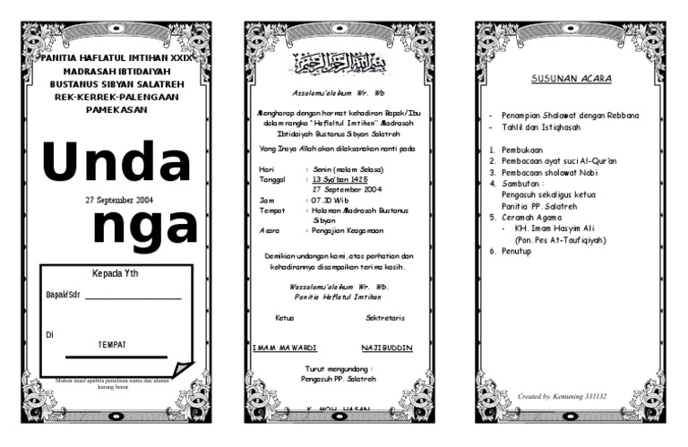 Cukup sampai disini informasi mengenai Koleksi Menarik Contoh Undangan Imtihan Madrasah yang bisa kami bagikan. Semoga bisa menambah wawasan untuk kalian semua