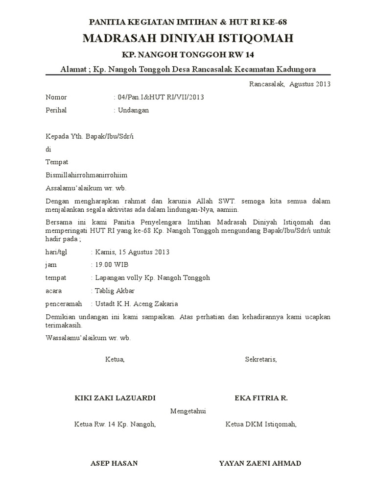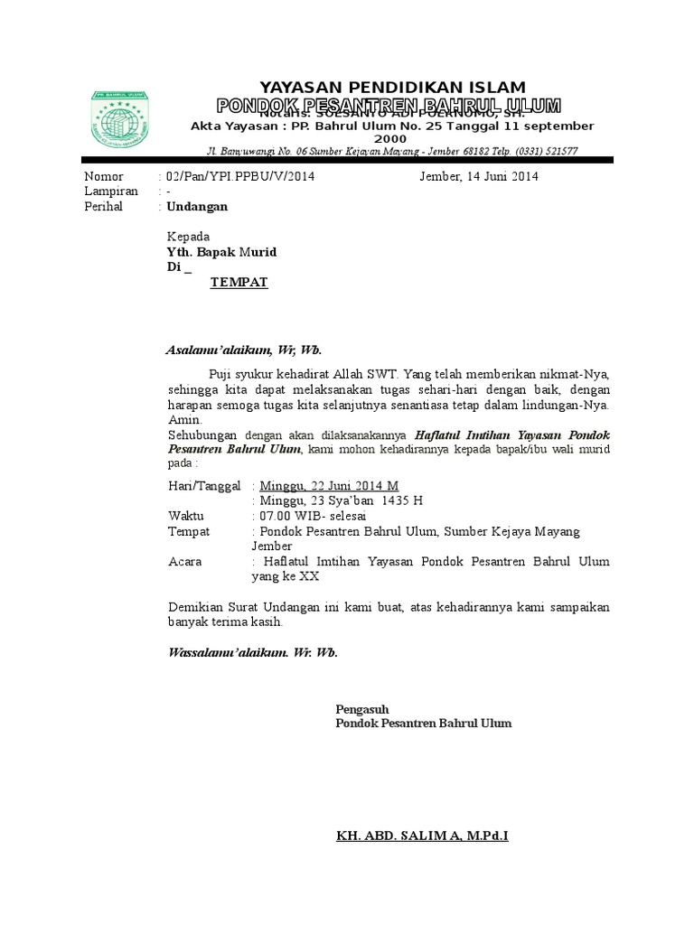 Inspiratif Contoh Undangan Imtihan
