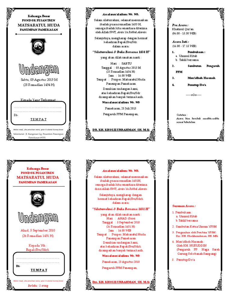 Apakah kamu sedang mencari Contoh Undangan Imtihan ? Jika benar maka kamu sudah membuka halaman website yang tepat. Pada post kali ini kamu bisa mendapatkan informasi mengenai Koleksi Menarik Contoh Undangan Imtihan.