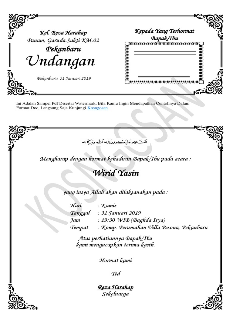 Lagi Trend Contoh Undangan Jamaah Yasinan
