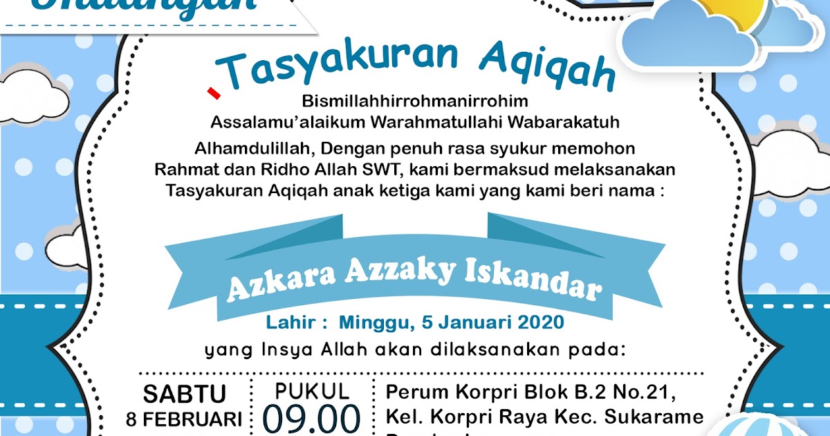 Apakah kamu sedang mencari Contoh Undangan Khitanan Dan Aqiqah ? Jika benar maka kamu sudah membuka halaman website yang tepat. Pada post kali ini kamu bisa mendapatkan informasi mengenai Terbaru Contoh Undangan Khitanan Dan Aqiqah.