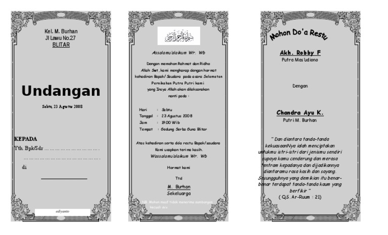 Inspiratif Contoh Undangan Pernikahan Lipat 3 Doc
