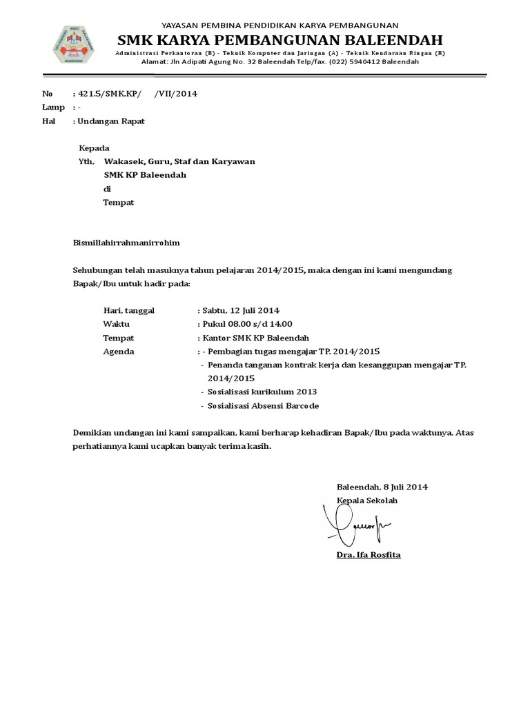 Koleksi Menarik Contoh Undangan Rapat Guru Di Sekolah