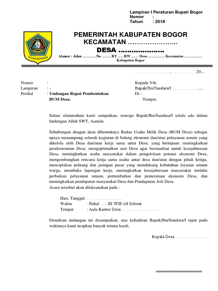 Terbaru Contoh Undangan Rapat Koordinasi Bumdes