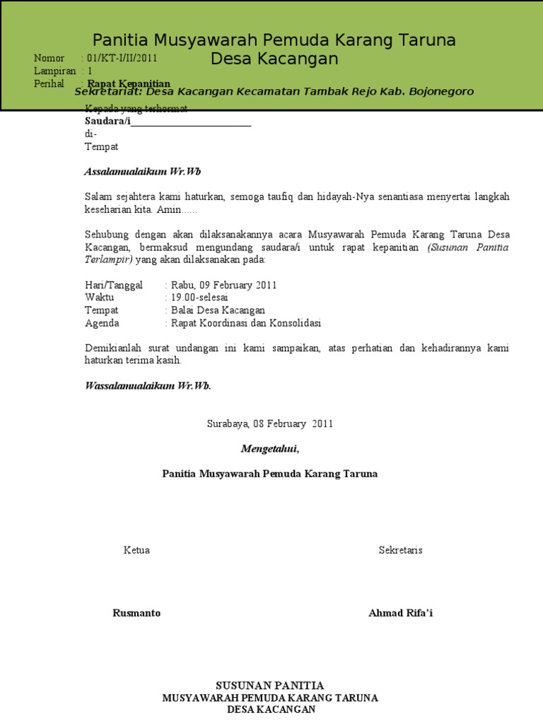 Terbaru Contoh Undangan Rapat Koordinasi Karang Taruna