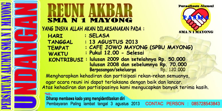 Cukup sampai disini informasi mengenai Inspiratif Contoh Undangan Reuni Sma Formal yang bisa kami bagikan. Semoga bisa menambah wawasan untuk kalian semua
