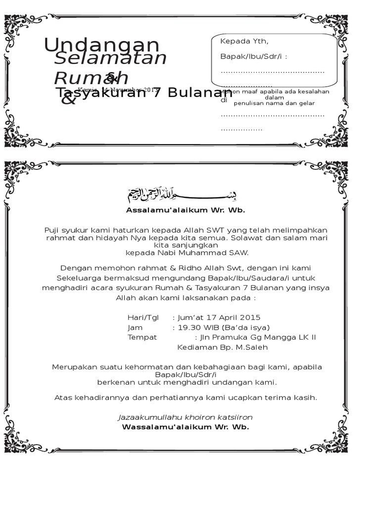 Apakah kamu sedang mencari Contoh Undangan Syukuran Rumah Baru ? Jika benar maka kamu sudah membuka halaman website yang tepat. Pada post kali ini kamu bisa mendapatkan informasi mengenai Lagi Trend Contoh Undangan Syukuran Rumah Baru.