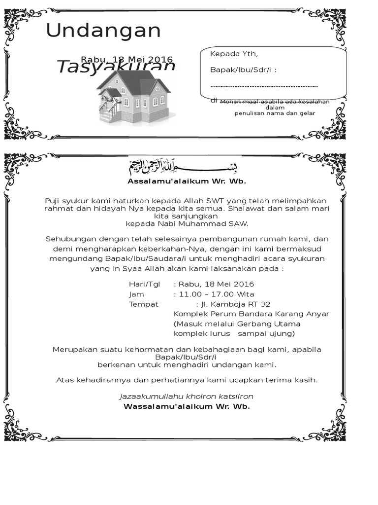 Keren Nih Contoh Undangan Syukuran Rumah Baru