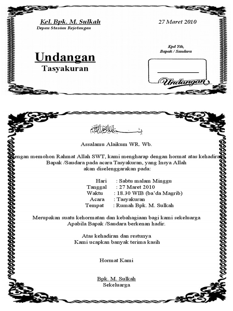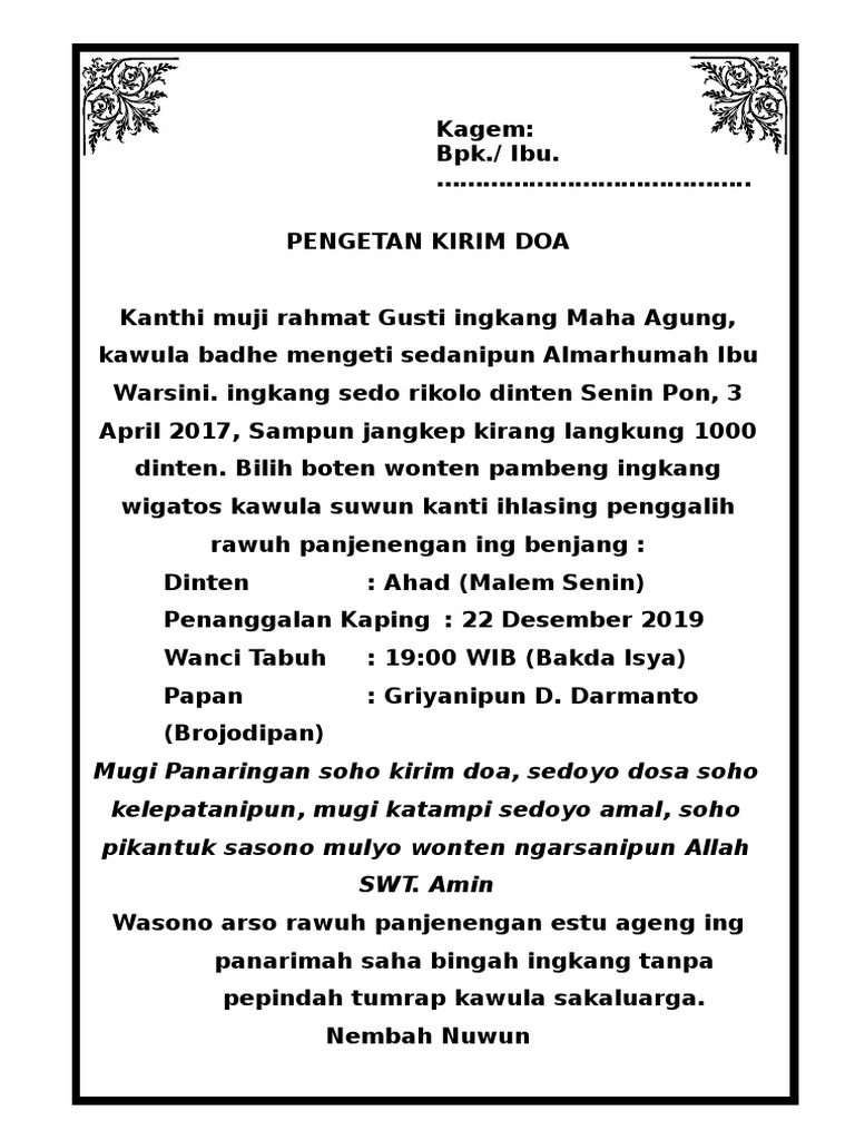 Terbaru Contoh Undangan Tahlil Bahasa Jawa