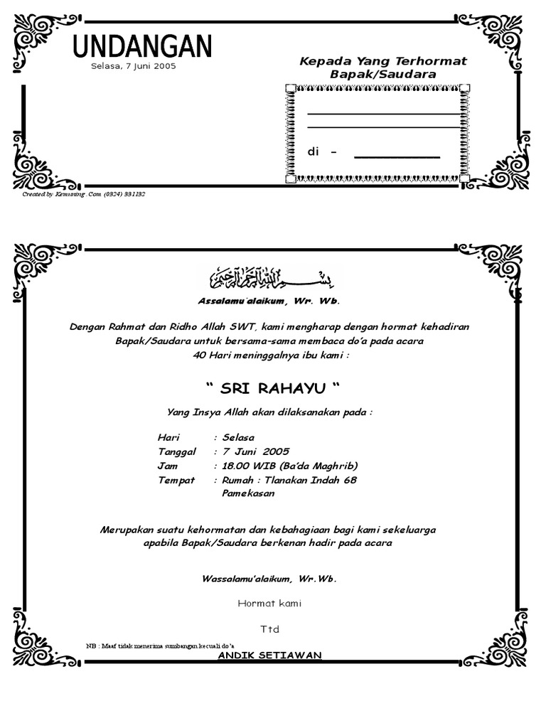 Inspiratif Contoh Undangan Tahlilan 40 Hari Doc