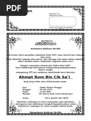 Lagi Trend Contoh Undangan Tahlilan 40 Hari Word