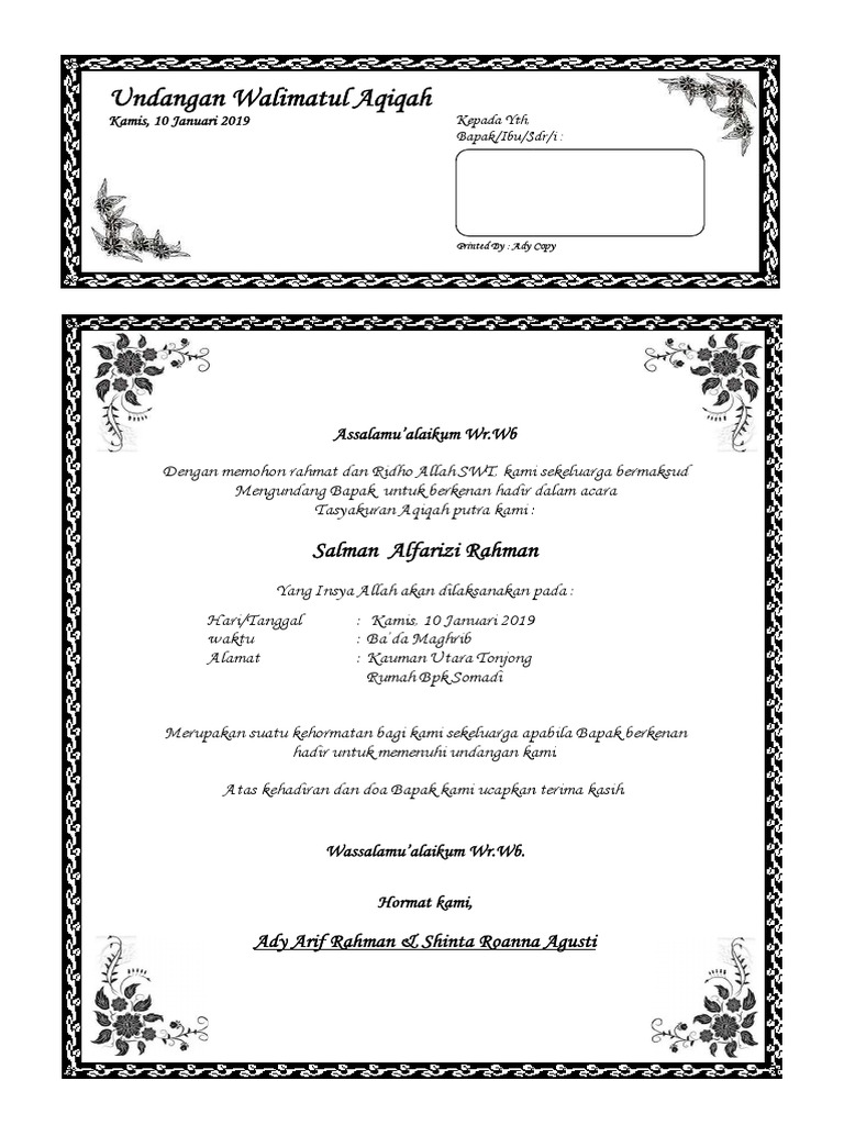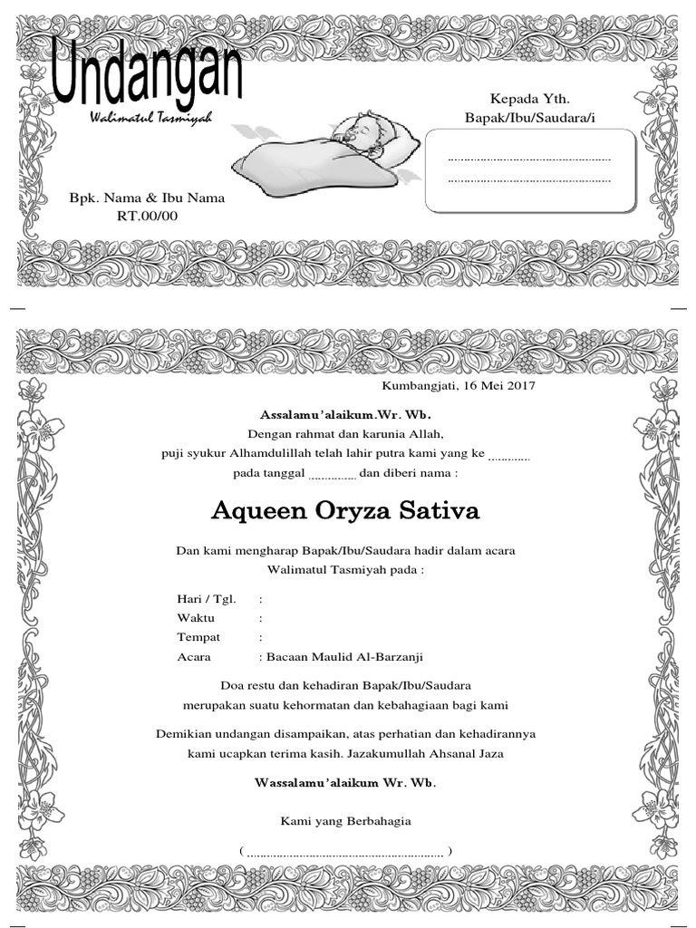 Terbaru Contoh Undangan Walimah Aqiqah