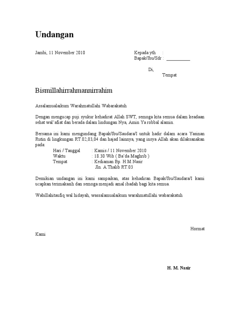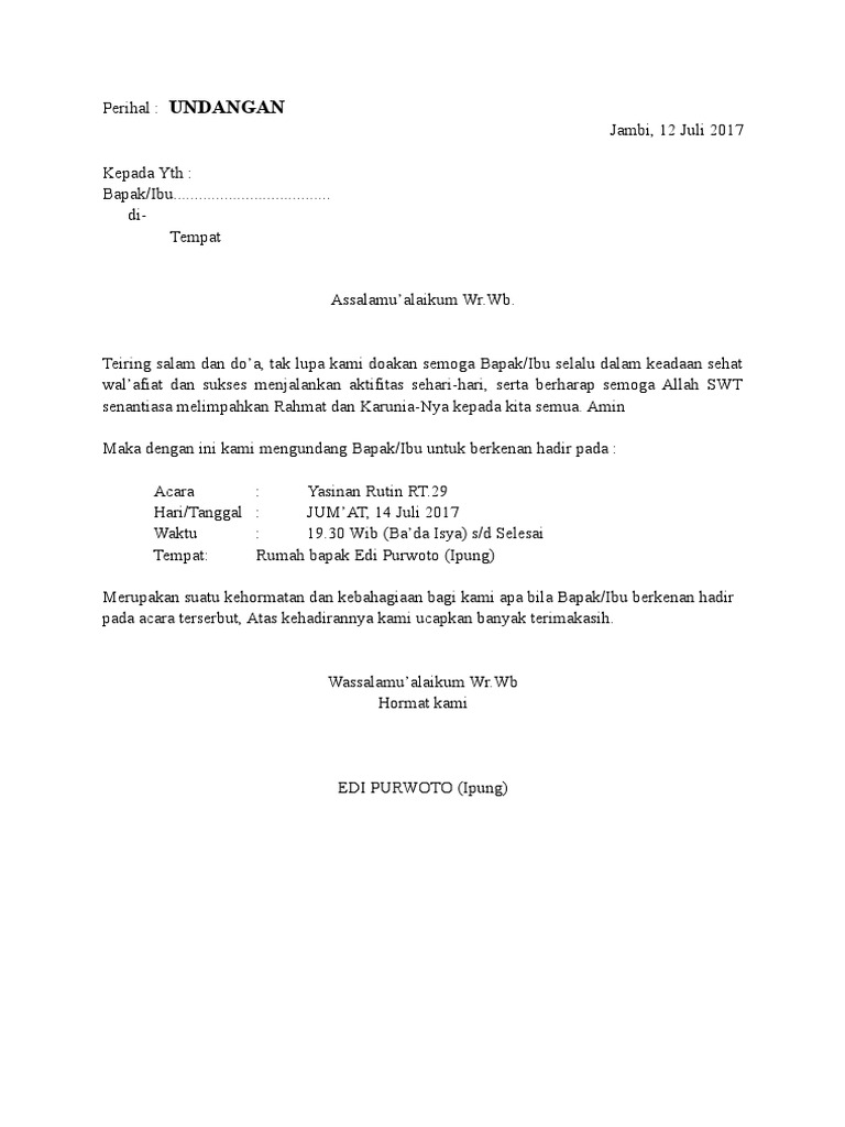 Apakah kamu sedang mencari Contoh Undangan Yasinan Rutin ? Jika benar maka kamu sudah membuka halaman website yang tepat. Pada post kali ini kamu bisa mendapatkan informasi mengenai Terbaru Contoh Undangan Yasinan Rutin.