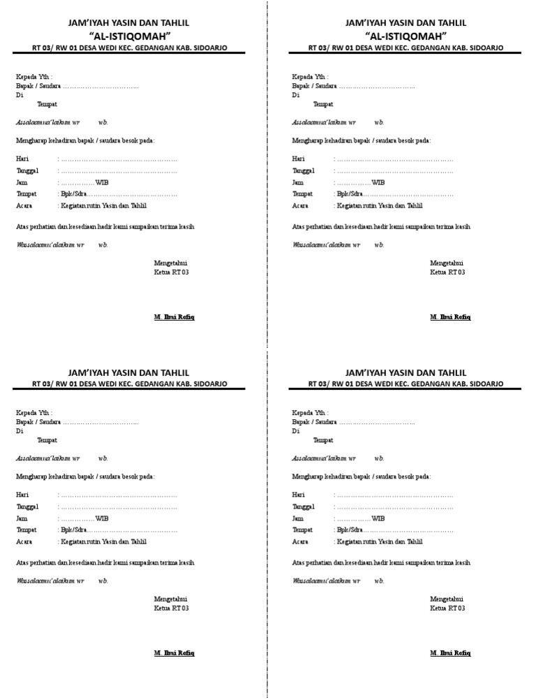 Cukup sampai disini informasi mengenai Keren Nih Contoh Undangan Yasinan Rutin yang bisa kami bagikan. Semoga bisa menambah wawasan untuk kalian semua