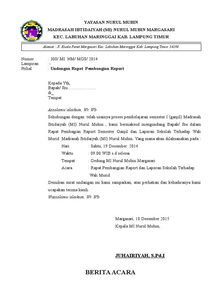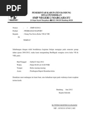 Koleksi Menarik Pembagian Raport Contoh Surat Undangan Resmi Sekolah Sd
