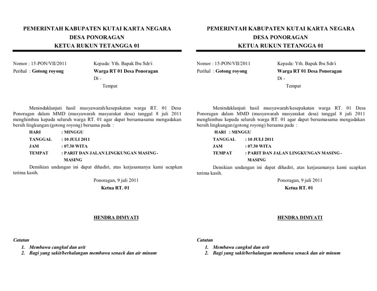 Terbaru Surat Undangan Gotong Royong Rt