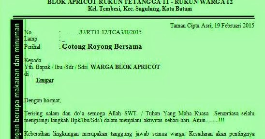 Apakah kamu sedang mencari Surat Undangan Gotong Royong Warga ? Jika benar maka kamu sudah membuka halaman website yang tepat. Pada post kali ini kamu bisa mendapatkan informasi mengenai Terbaru Surat Undangan Gotong Royong Warga.