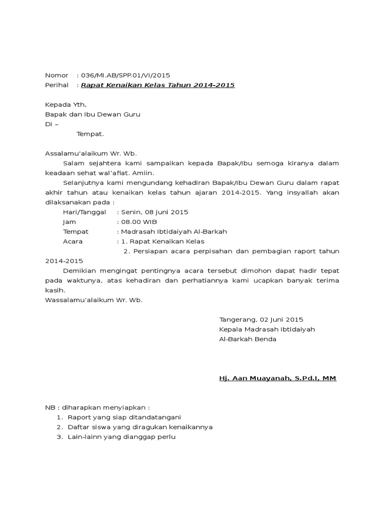 Paling Populer Surat Undangan Rapat Kenaikan Kelas