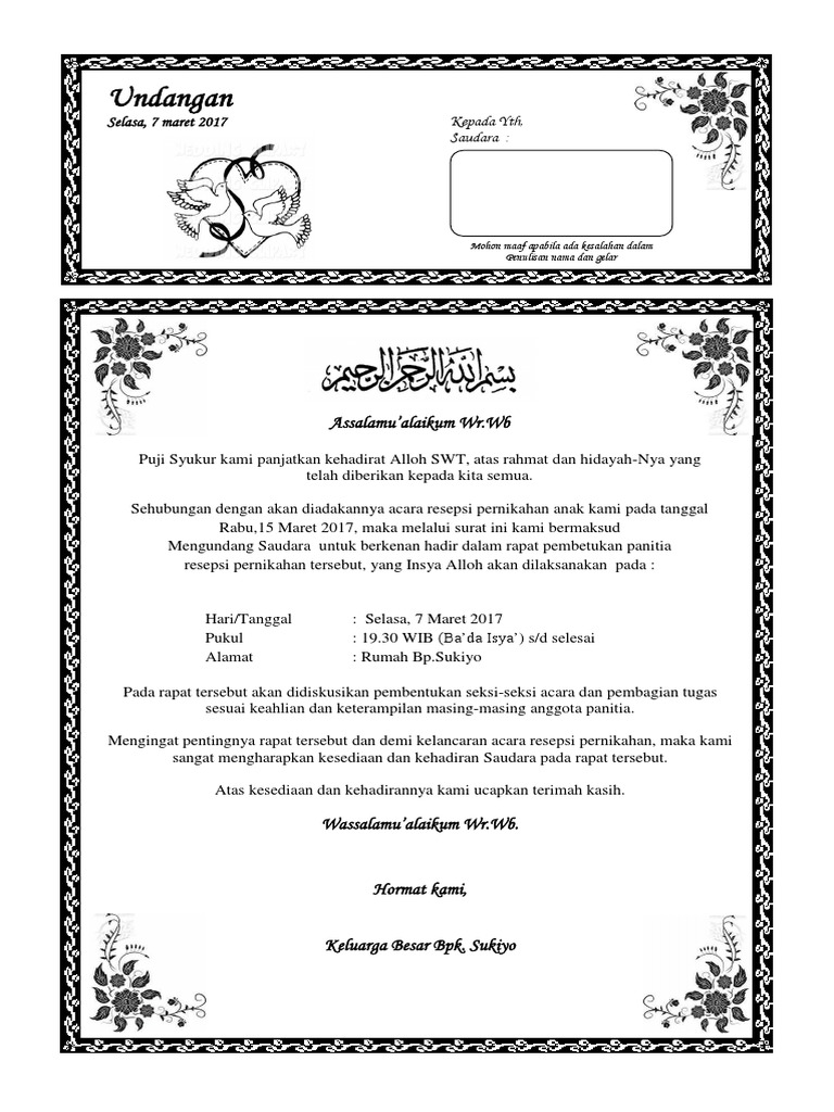 Apakah kamu sedang mencari Surat Undangan Resepsi Pernikahan ? Jika benar maka kamu sudah membuka halaman website yang tepat. Pada post kali ini kamu bisa mendapatkan informasi mengenai Keren Nih Surat Undangan Resepsi Pernikahan.