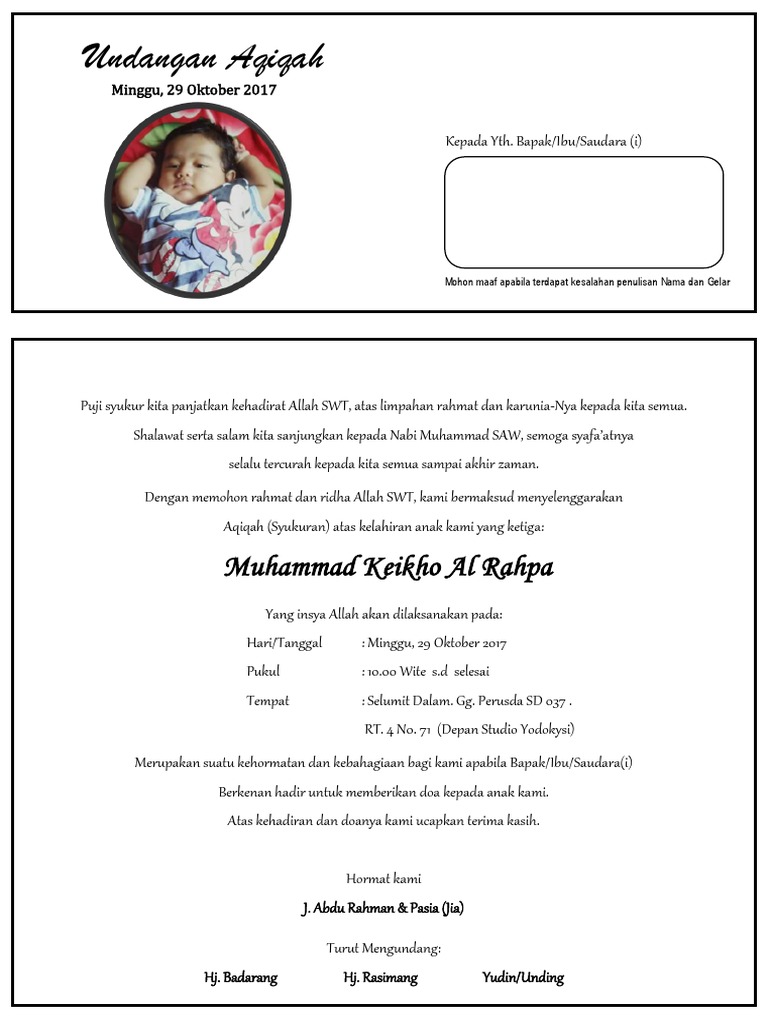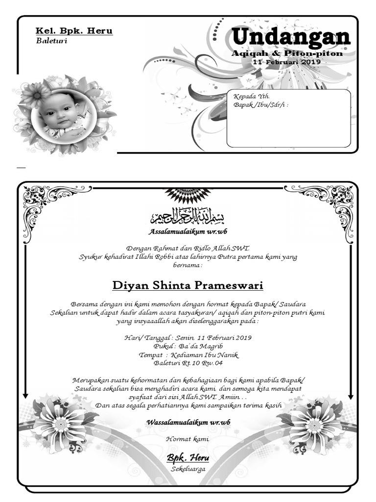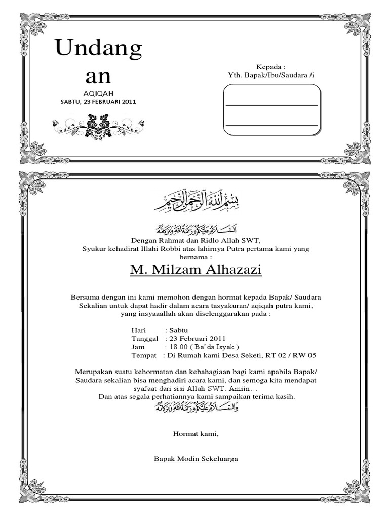 Apakah kamu sedang mencari Undangan Aqiqah Docx ? Jika benar maka kamu sudah membuka halaman website yang tepat. Pada post kali ini kamu bisa mendapatkan informasi mengenai Paling Baru Undangan Aqiqah Docx.