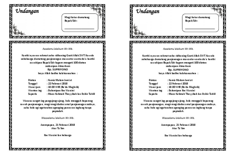 Apakah kamu sedang mencari Undangan Bahasa Jawa ? Jika benar maka kamu sudah membuka halaman website yang tepat. Pada post kali ini kamu bisa mendapatkan informasi mengenai Paling Populer Undangan Bahasa Jawa.