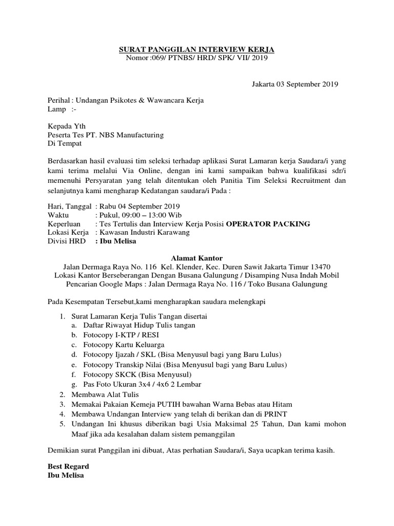 Cukup sampai disini informasi mengenai Paling Baru Undangan Interview Kerja yang bisa kami bagikan. Semoga bisa menambah wawasan untuk kalian semua