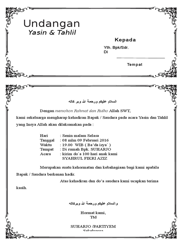 Lagi Trend Undangan Tahlil 100 Hari Ms Word