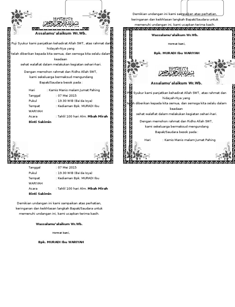 Apakah kamu sedang mencari Undangan Tahlilan 100 Hari ? Jika benar maka kamu sudah membuka halaman website yang tepat. Pada post kali ini kamu bisa mendapatkan informasi mengenai Lagi Trend Undangan Tahlilan 100 Hari.