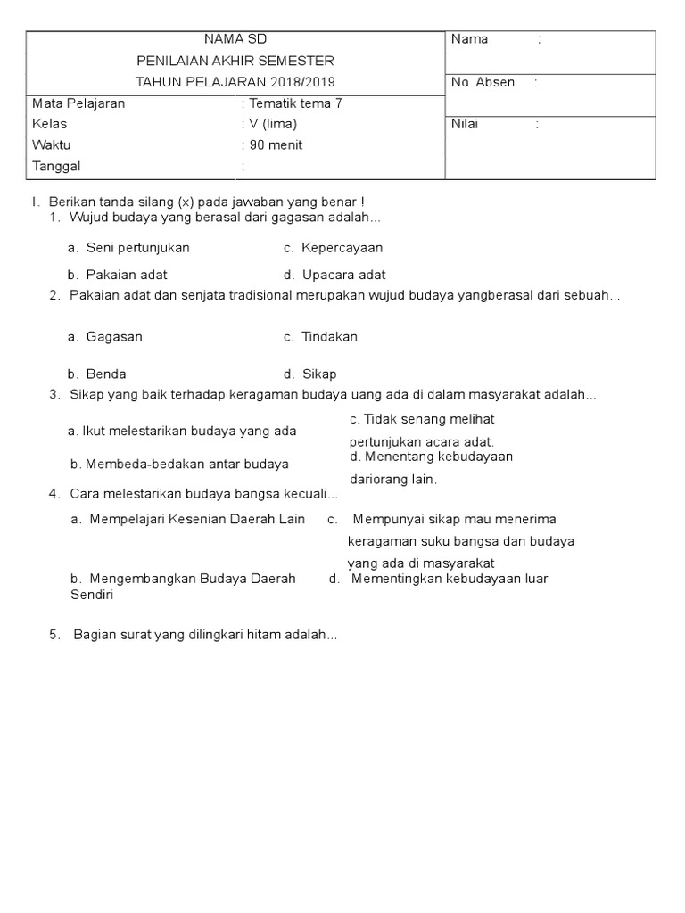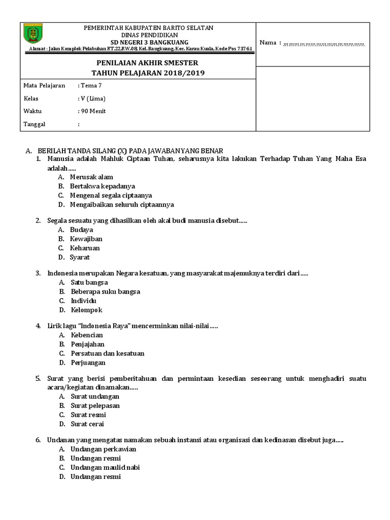 Akhir kata kami ucapkan semoga apa yang telah disampaikan di atas dapat menjadi referensi terbaik terkait dengan soal penilaian akhir tahun untuk kelas 5 tema 6. Mengatasnamakan sebuah instansi atau organisasi dan kedinasan. Undangan setengah resmi d. Biasanya dipergunakan untuk kepentingan kedinasan.