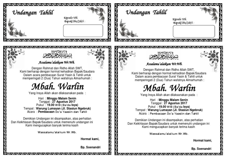 Cukup sampai disini informasi mengenai Paling Baru Undangan Yasin Dan Tahlil yang bisa kami bagikan. Semoga bisa menambah wawasan untuk kalian semua